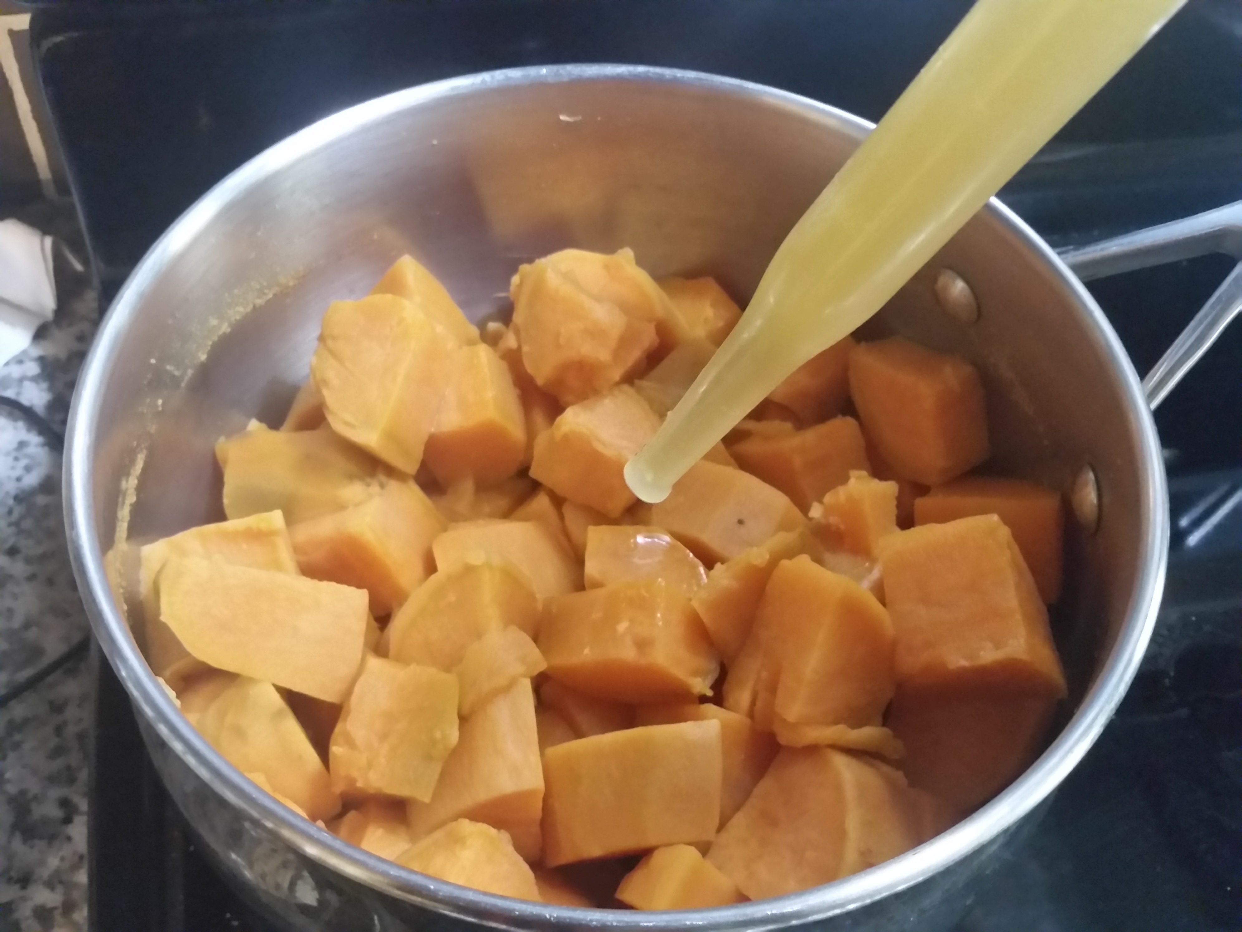 Step 11 - Peel, chop and boil the rest of the sweet potatoes. Once soft they can be drained, mashed, seasoned with salt and served