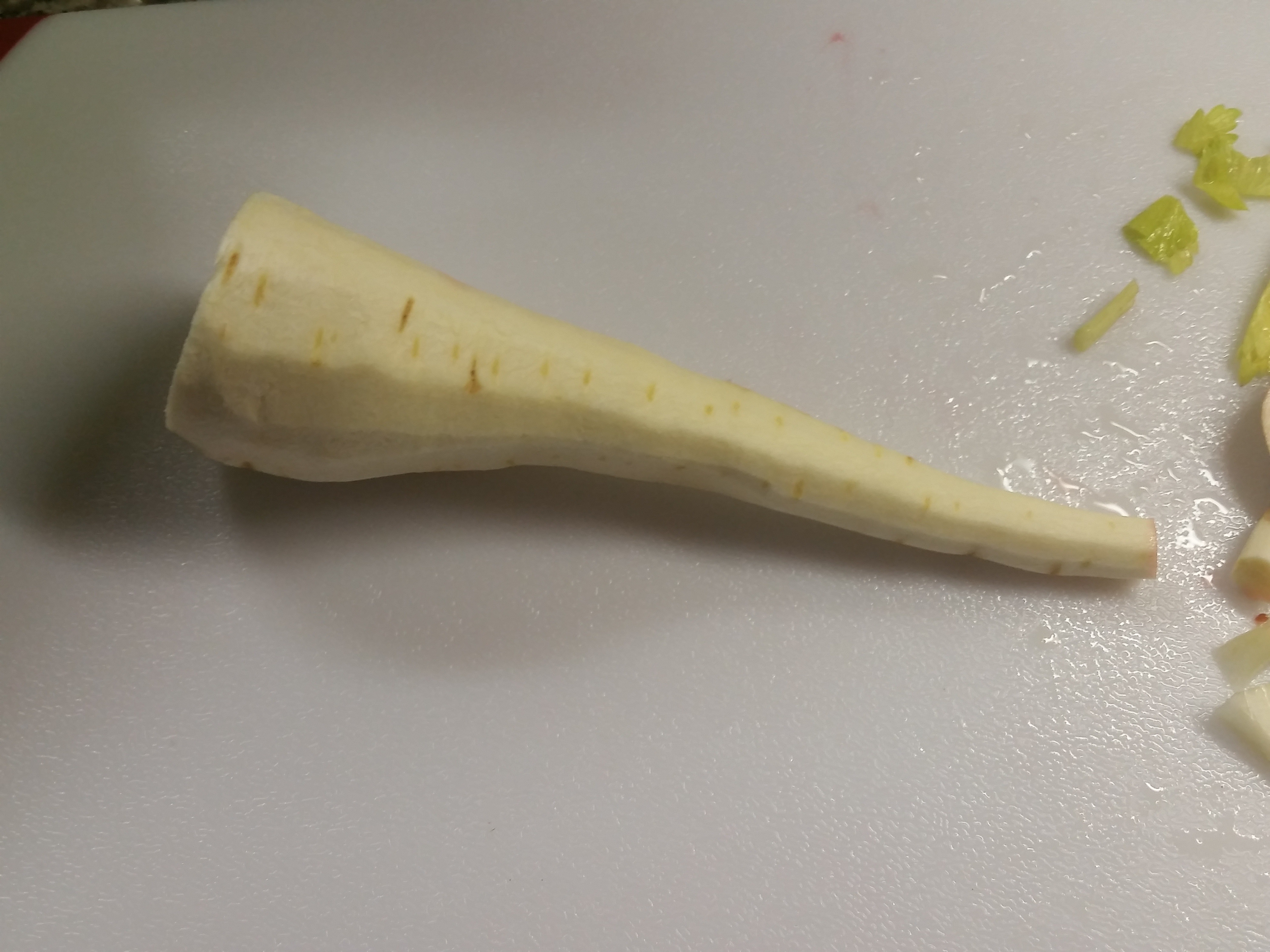 Step 4 - While turkey is getting started prepare stuffing by peeling carrots and parsnips (and one sweet potato)